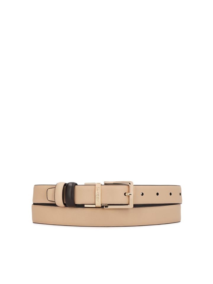 Этот тонкий пояс - идеальный выбор для женщин, ценящих сдержанные, но эффектные аксессуары. Точная обработка и изысканные детали придают ему эксклюзивный характер, идеально дополняющий вневременную элегантность. Пояс изготовлен из натуральной кожи белоснежного цвета, излучающей свежесть и современный стиль. Вся поверхность украшена бежевыми монограммами KAZAR, расположенными через равные промежутки, что добавляет изысканности и роскоши. Квадратная пряжка из металла золотистого цвета идеально дополняет дизайн. Ее геометрическая форма и полированная отделка привлекают внимание и подчеркивают минималистичный характер пояса. Благодаря своему тонкому профилю, пояс идеально подходит как для повседневного, так и для формального стиля, красиво подчеркивая талию или бедра. Пояс имеет пять отверстий и возможность индивидуальной регулировки длины благодаря пряжке, которую можно укоротить.
