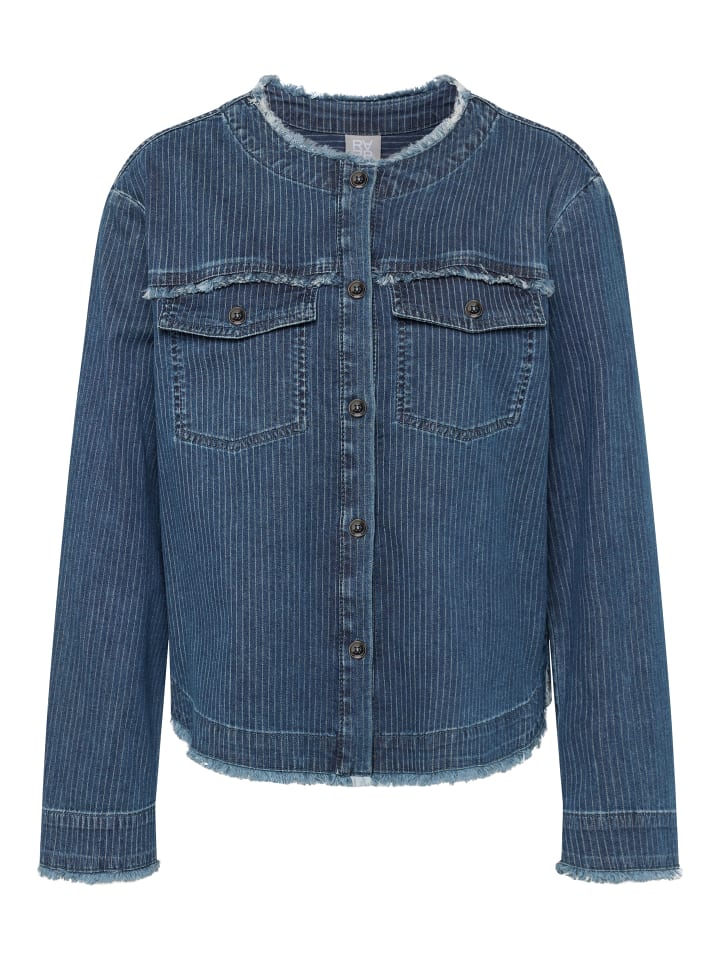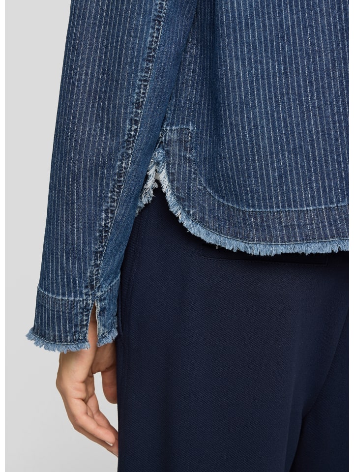 Эта современная джинсовая блузка впечатляет своим чистым, прямым кроем и очаровательными деталями. Накладные нагрудные карманы с бахромой добавляют женственности, а едва заметная вертикальная текстура придает дизайну особый характер. Круглый вырез без воротника выглядит лаконично и современно - идеально подходит для стильных повседневных образов. Прямой крой. Нагрудные карманы с бахромой. Круглый вырез без воротника. Едва заметная вертикальная текстура. Застежка на кнопки спереди. Джинсовая куртка в полоску с бахромой. Джинсовая блузка в полоску с бахромой. Джинсовая ткань. Джинсовая ткань в полоску. Прямой крой. Рост модели 1,76 м, размер 38. Материал: 90% хлопок, 8% полиэстер, 2% эластан