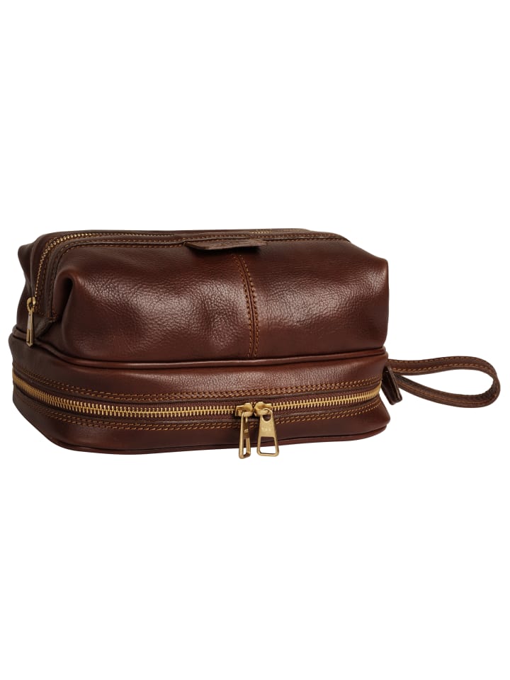 Косметичка из кожи Piké - идеальный аксессуар для путешествий, вмещающий косметику и туалетные принадлежности. Внутри находится одно широкое основное отделение и дополнительный карман на молнии внизу, идеально подходящий, например, для хранения ювелирных изделий. Элегантный каштаново-коричневый цвет и золотые детали дополняют изысканный вид этой косметички из кожи Piké.