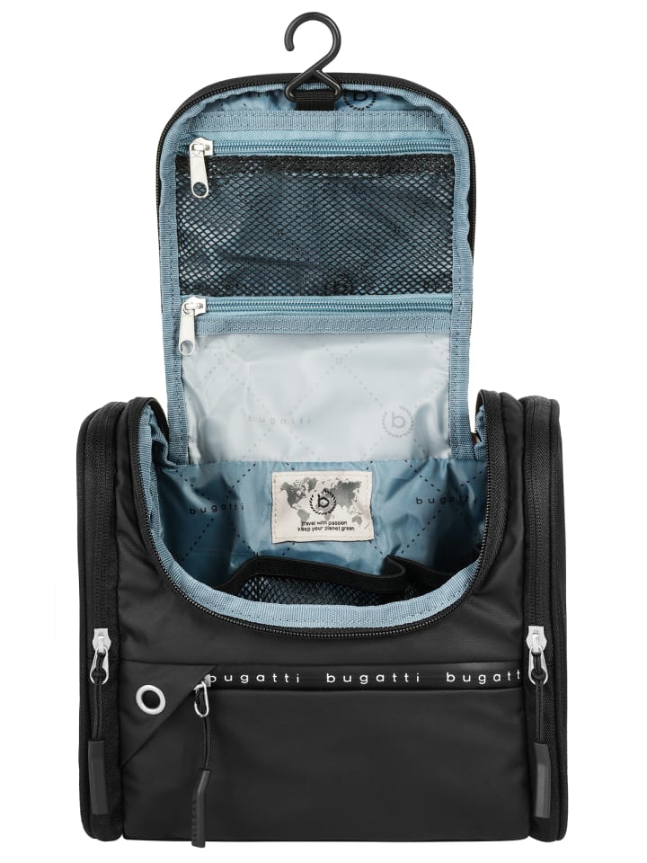 Правильно подготовленная к путешествию сумка для туалетных принадлежностей Bugatti избавит вас от множества стрессов и хлопот - идеальный выбор. Благодаря своему небольшому весу она практически незаметна на весах для багажа. Основное отделение предлагает много места для хранения, различные карманы и крючок для подвешивания. Дополнительные карманы на молнии расположены снаружи сумки.