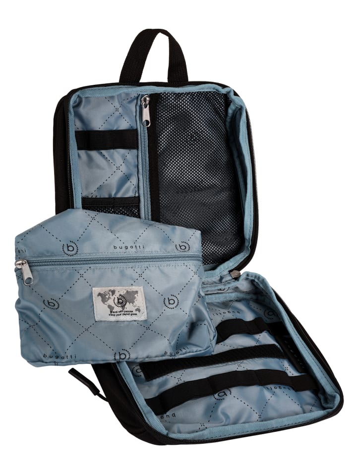 Поскольку в путешествии важен каждый сантиметр и каждый грамм, косметичка Bugatti, благодаря своему легкому весу и среднему размеру, станет идеальным выбором. Благодаря молнии, охватывающей всю длину сумки, ее основное отделение открывается полностью. Внутри вы найдете множество петель для косметики и туалетных принадлежностей, сетчатые карманы разных размеров и съемную косметичку на молнии. Последнюю можно закрепить внутри основного отделения с помощью ремешка на липучке. Закрывающийся передний карман обеспечивает дополнительное место для хранения. Ручка удобна как для переноски, так и для подвешивания косметички. Благодаря своим функциональным особенностям и продуманному дизайну, это настоящий ас среди необходимых в путешествии вещей!