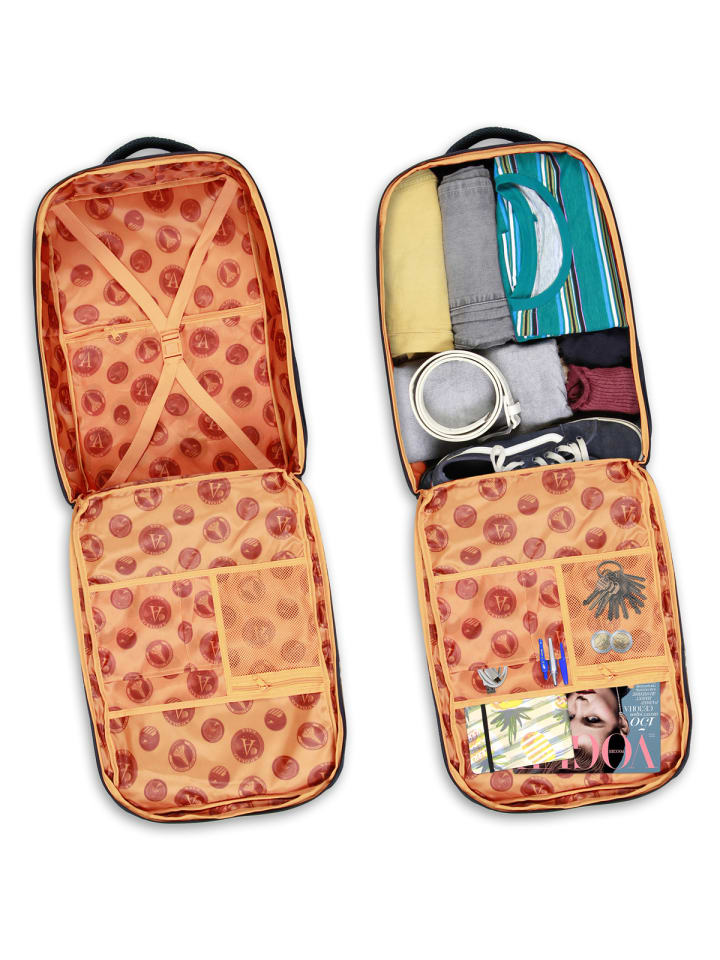 Незаменимый аксессуар для любителей космоса: этот рюкзак впечатляет своим футуристическим дизайном, светоотражающим логотипом и деталями, вдохновленными скафандром астронавта. Небольшой американский флаг добавляет аутентичности и придает дизайну уникальный стиль. Этот рюкзак для ручной клади может похвастаться множеством продуманных функций, которые значительно упрощают путешествия. Разработанный в соответствии с требованиями большинства авиакомпаний к ручной клади, он изготовлен из водостойкого, сверхлегкого материала и надежно защищает содержимое от непогоды. Просторное основное отделение имеет перекрестные лямки и отдельный сетчатый карман на молнии, обеспечивая достаточно места для одежды, туалетных принадлежностей и письменных принадлежностей. Два дополнительных кармана, открывающихся на 180°, упрощают упаковку и обеспечивают быстрый доступ к другим необходимым в путешествии вещам. Мягкое отделение для ноутбука защищает устройства до 15 дюймов, а водостойкий передний карман сохраняет документы в безопасности и сухости. Дополнительные боковые карманы предоставляют место для бутылок с водой или мелких предметов. Регулируемые плечевые лямки, усиленные прочной тесьмой, обеспечивают комфортное ношение. Четыре боковых компрессионных ремня позволяют гибко регулировать объем.