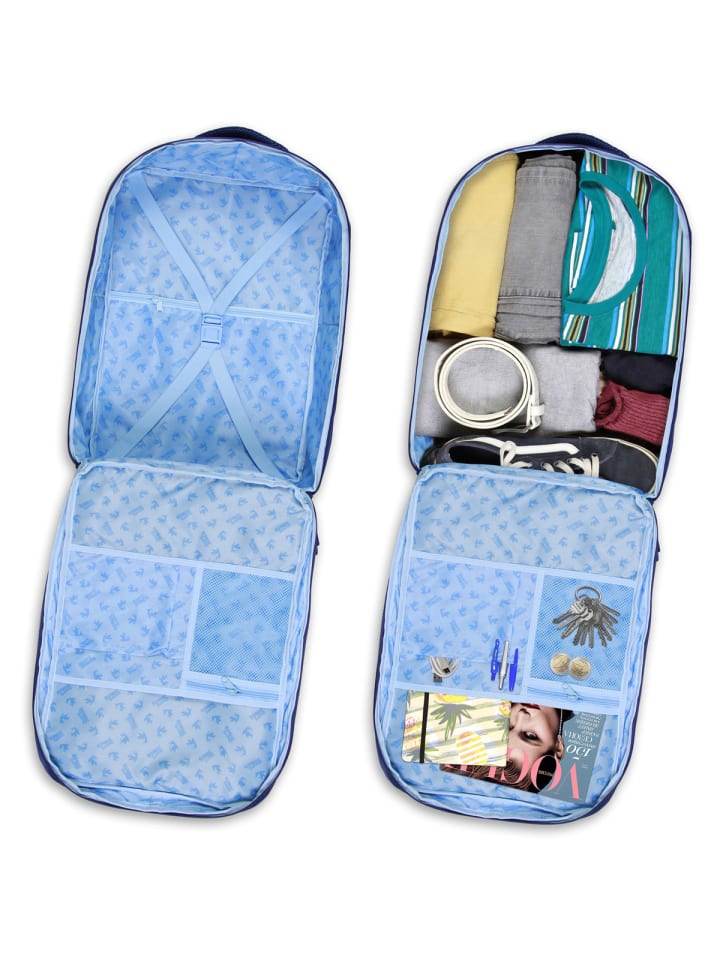Благодаря динамичному дизайну этот синий рюкзак привнесет скорость и стиль в вашу повседневную жизнь. Популярный мотив и японские иероглифы делают его настоящим украшением. Этот большой дорожный рюкзак впечатляет множеством продуманных функций, которые заметно упрощают путешествие. Совместимый с регистрируемым багажом, он изготовлен из водостойкого, сверхлегкого материала и надежно защищает содержимое от неблагоприятных погодных условий. Просторное основное отделение оснащено перекрестными лямками и отдельным сетчатым карманом на молнии, предлагая достаточно места для одежды, туалетных принадлежностей и письменных принадлежностей. Два дополнительных кармана, открывающихся на 180°, облегчают упаковку и обеспечивают быстрый доступ к другим необходимым в путешествии вещам. Мягкое отделение для ноутбука защищает устройства до 17 дюймов, а водостойкий передний карман сохраняет документы в безопасности и сухости. Дополнительные боковые карманы предоставляют место для бутылок с водой или мелких предметов. Дышащая мягкая спинка и регулируемые плечевые лямки, усиленные прочной тесьмой, обеспечивают комфортное ношение. Четыре боковых компрессионных ремня позволяют гибко регулировать объем.