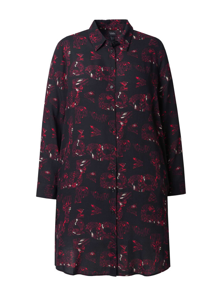 Длинная блузка А-силуэта из мягкого вискозного крепа с узором. Воротник рубашечного типа, планка на пуговицах, боковые карманы. Длинные рукава с манжетами. Закругленный низ с длинными боковыми разрезами для дополнительного комфорта.
