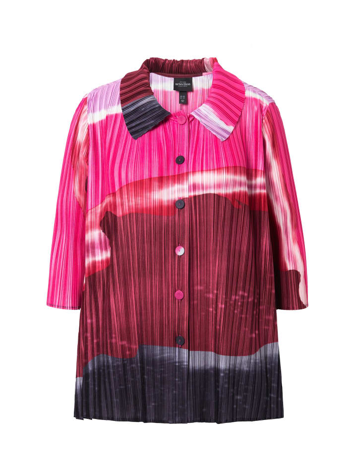 Плиссированная блузка А-силуэта, выполненная из тонких складок с элегантным дизайном. Рубашечный воротник, планка на пуговицах с обтянутыми пуговицами, рукава 3/4. Боковые разрезы для дополнительного комфорта.