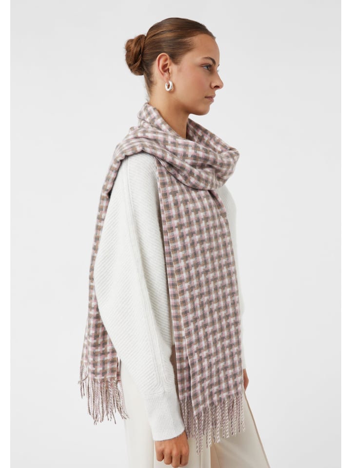 Стильный комфорт: этот мягкий шарф с бахромой и изысканным цветовым переплетением сочетает в себе вневременной клетчатый узор с современным стилем. Тщательно выполненная бахрома добавляет динамичности, а приятный на ощупь материал обеспечивает уют и тепло. Универсальный аксессуар, который легко сочетается с различными нарядами, добавляя элегантности вашему образу. - из мягкой ткани. Материал: 80% полиэстер, 20% вискоза.