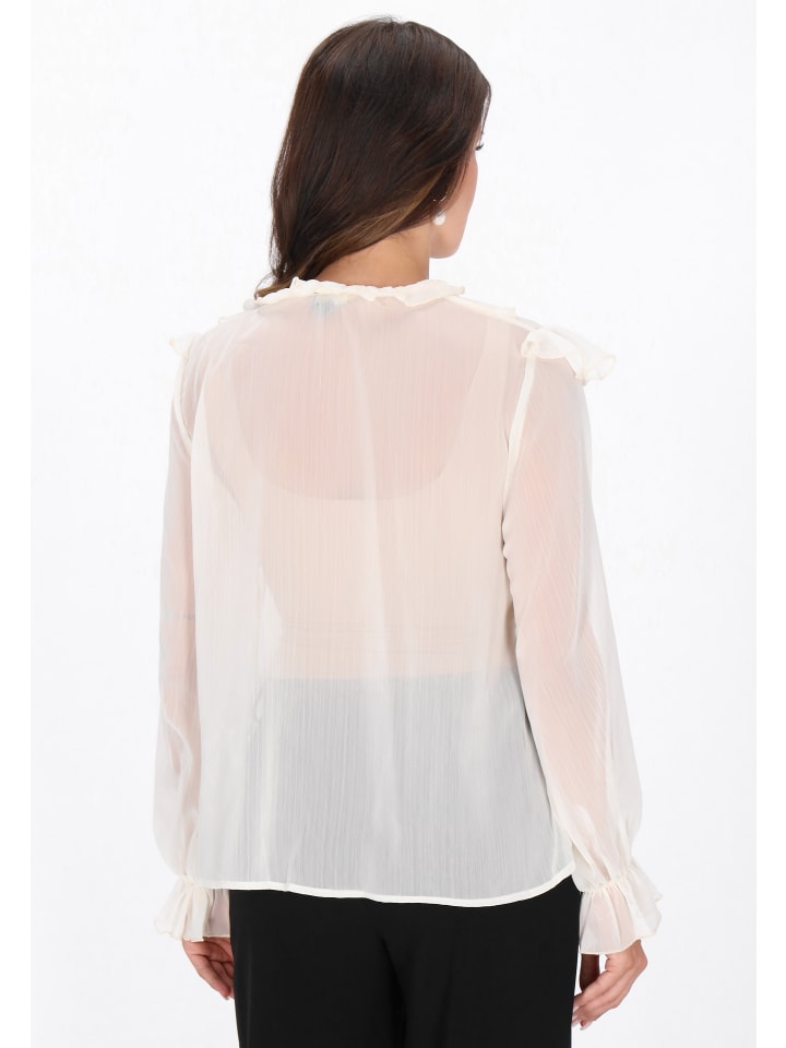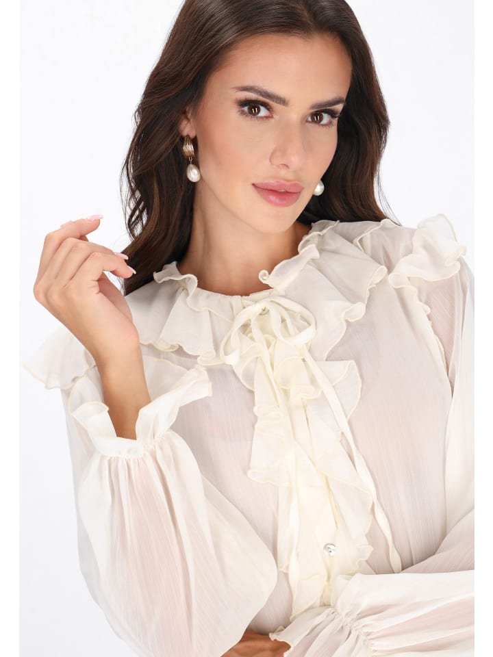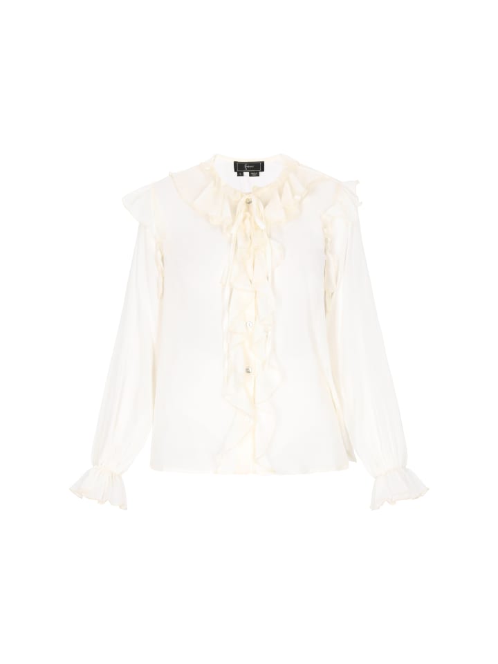 Эта элегантная блузка из коллекции Faina - идеальное сочетание романтизма и легкости. Изготовленная из нежного, прозрачного шифона, она очаровывает легкими оборками и пышными рукавами-епископскими, которые придают ей неповторимый шарм. Свободный крой гарантирует комфорт, а круглый вырез и застежка на пуговицы подчеркивают классический характер модели. Идеально подходит для праздничных вечеринок, романтических ужинов или особых случаев, она хорошо сочетается как с брюками с высокой талией, так и с элегантной юбкой.