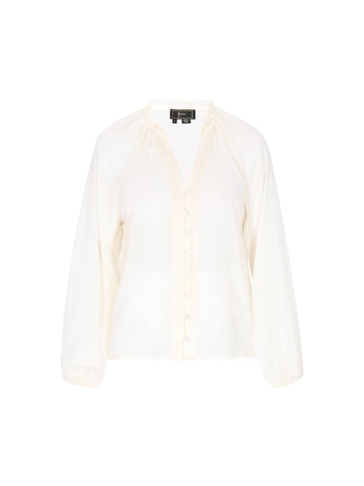 - Блузка свободного кроя с вырезом и длинными рукавами