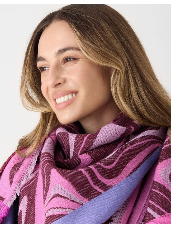 Этот жаккардовый шарф из мягкой смеси хлопка и шерсти украшен абстрактным узором в гармонично сочетающихся цветах. Текстурированная поверхность придает дизайну глубину, а материал обеспечивает приятное тепло. Идеально подходит для современных образов с художественным вкусом.