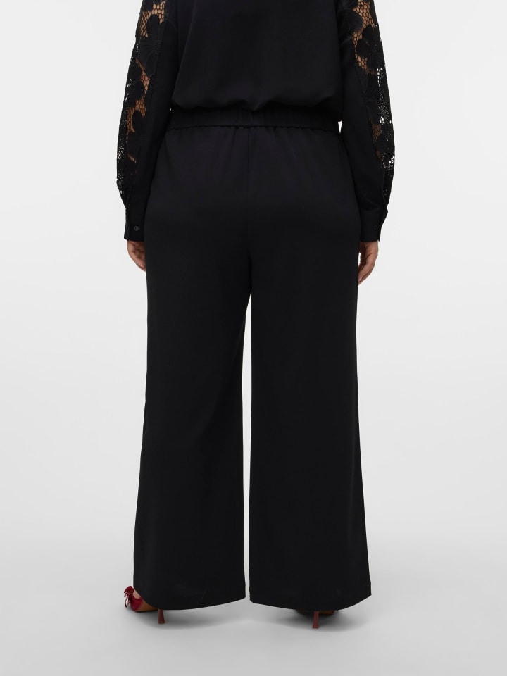 Обновите свой гардероб с помощью нестареющей классики. Брюки создают элегантный образ. Сочетайте эти брюки с ботинками на каблуке и блузкой или рубашкой для шикарного повседневного образа, который вы также можете носить в офис. Предпочитаете более повседневный образ? Тогда просто наденьте их с классической футболкой и стильными кроссовками. Модели для женщин с пышными формами созданы специально для женщин с фигурой «плюс-сайз». - Тип изделия: Классические брюки - Талия: Средняя - Детали: Эластичный пояс сзади - Посадка: Широкие штанины - Стиль: Традиционный - Классические брюки - Широкие штанины - Материал: - 95% полиэстер - 5% эластан
