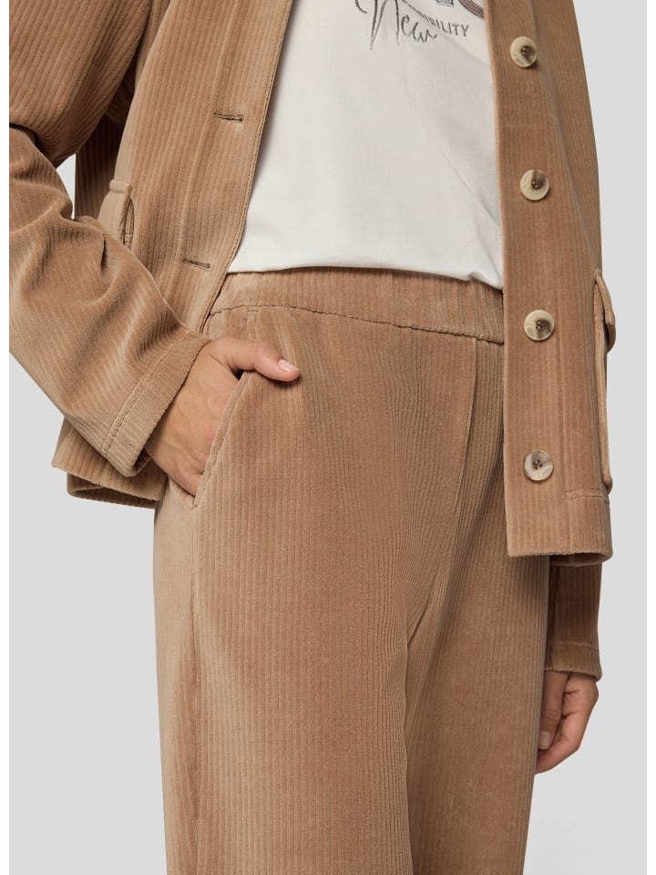 Эти вельветовые брюки впечатляют своей мягкостью и комфортной посадкой. Эластичный пояс обеспечивает идеальную посадку, а прямой крой штанин создает современный силуэт. Практичные боковые карманы дополняют дизайн. Благодаря добавлению эластичности, они особенно удобны и просты в уходе - действительно комфортная вещь для повседневной носки и отдыха. Мягкий вельвет с эластичностью. Прямой, длинный крой штанин. Эластичный пояс без застежки. С двумя боковыми карманами. - Удобные вельветовые брюки с эластичным поясом и прямым кроем штанин - Смесь хлопка и эластана - Вельвет - Прямой крой - Рост модели 1,76 м, размер 38