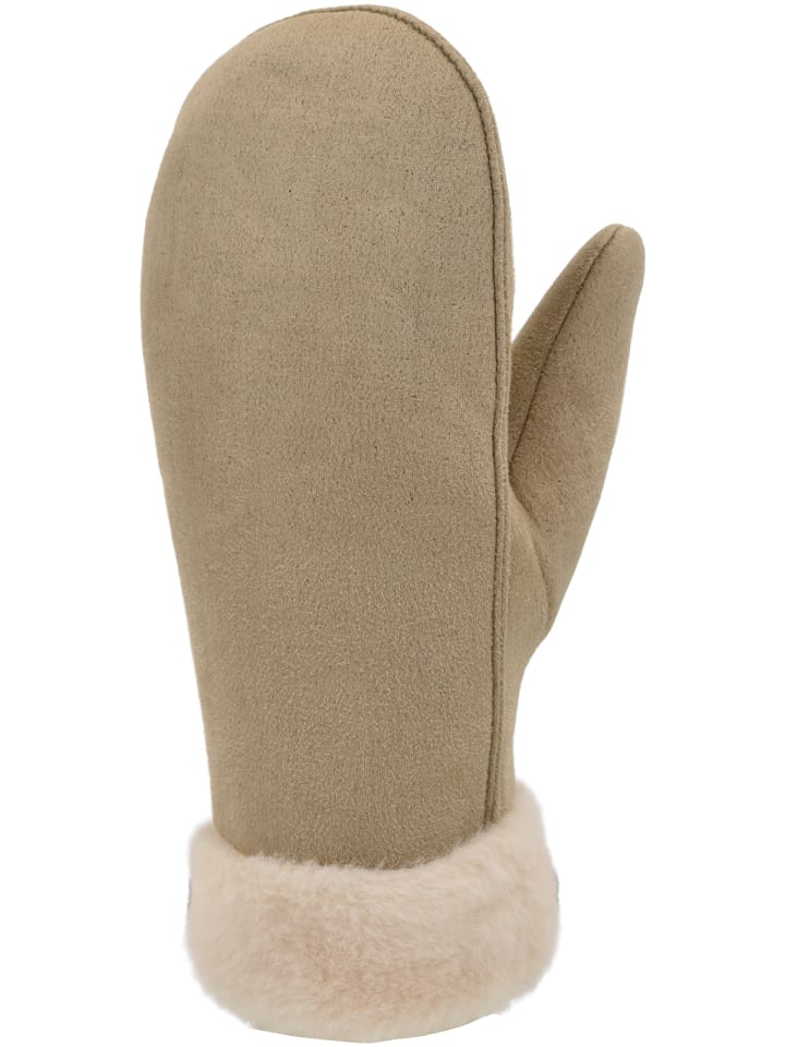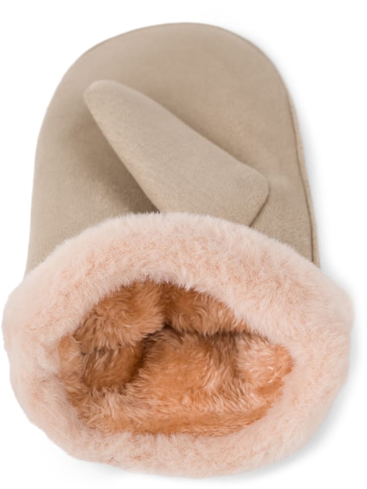 - Роскошное сочетание материалов: ладонь с элегантным замшевым эффектом и мягкая манжета из искусственного меха для оптимального комфорта и стиля.