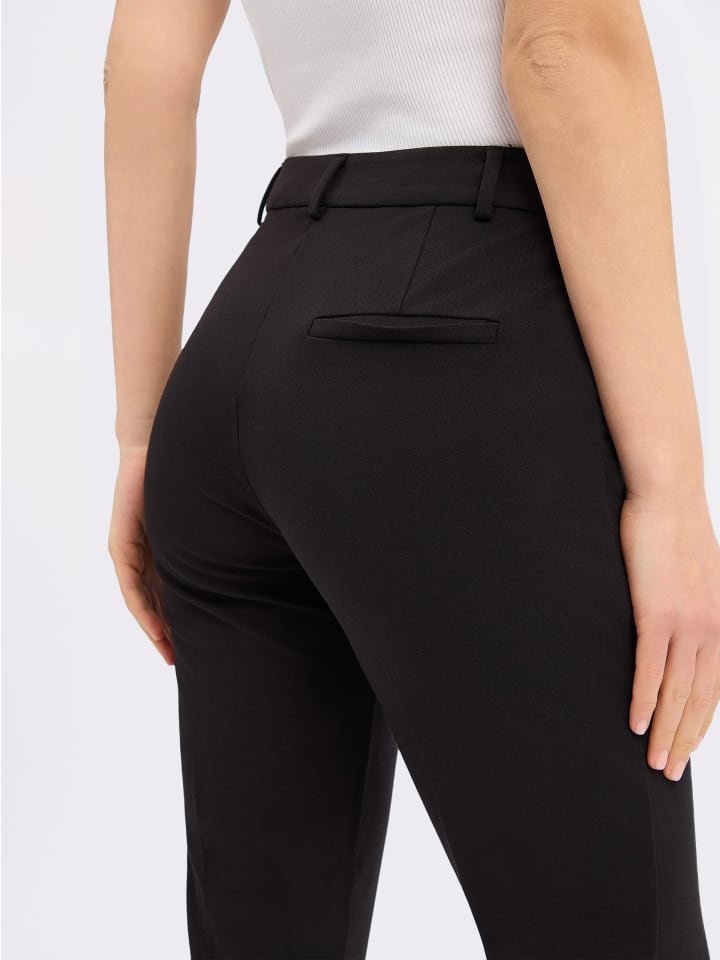 Эти брюки-компания, сочетающие в себе непринужденность и элегантность, отличаются классическими деталями, такими как отглаженные складки; укороченная длина с разрезами по низу добавляет современный штрих. - Зауженный крой - Втачный пояс с петлями для ремня - Скрытая застежка на молнию и двойной крючок - Отглаженные складки - 2 французских кармана - 1 декоративный задний карман - Вытачки на поясе сзади - Зауженные штанины - Короткие разрезы по низу - Укороченная длина - Эластичная синтетическая ткань