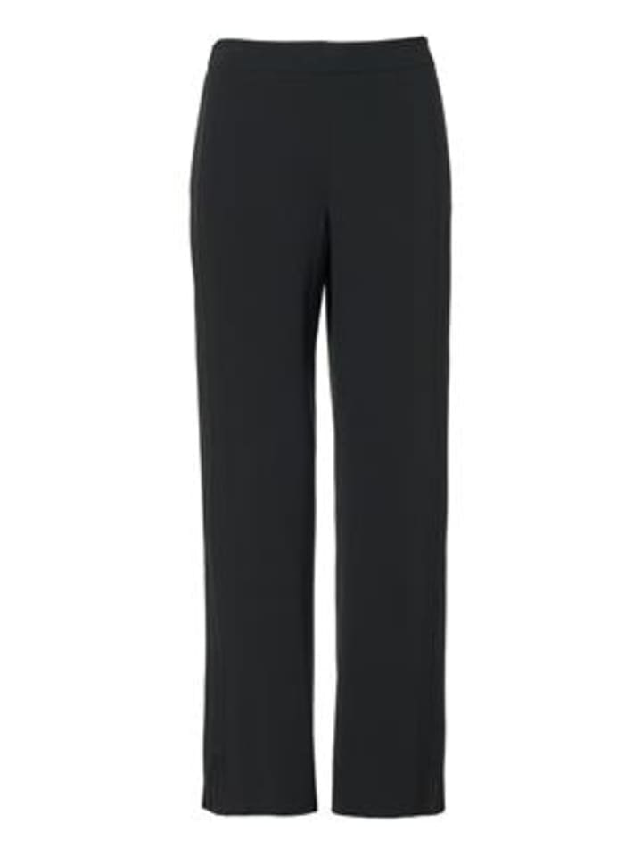 Эти черные брюки - универсальная классика с безграничными возможностями для создания различных образов. Высокая талия с удлиненной застежкой создает привлекательный и женственный силуэт. Узкий крой и прямые, длинные штанины придают брюкам элегантный и изысканный вид. Уникальные детали, такие как блестящая атласная отделка и элегантные боковые разрезы, придают брюкам современный и роскошный вид. Эластичный пояс сзади обеспечивает дополнительный комфорт, поэтому брюки можно носить с комфортом весь день. Независимо от того, создаете ли вы деловой образ с блузкой и блейзером, праздничный образ с каблуками и блестящим топом или расслабленный стиль с футболкой и кроссовками, эти черные брюки идеально подойдут для любого случая. Высокая талия подчеркивает фигуру и делает заправку топов особенно стильной. Материал: 79% ацетат, 21% полиэстер