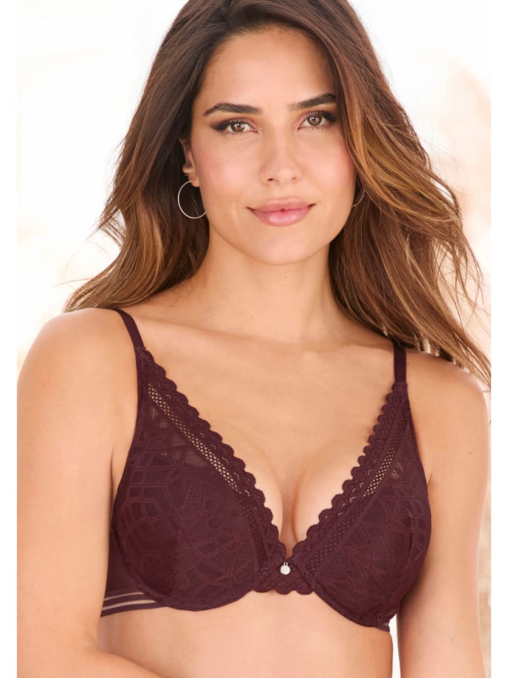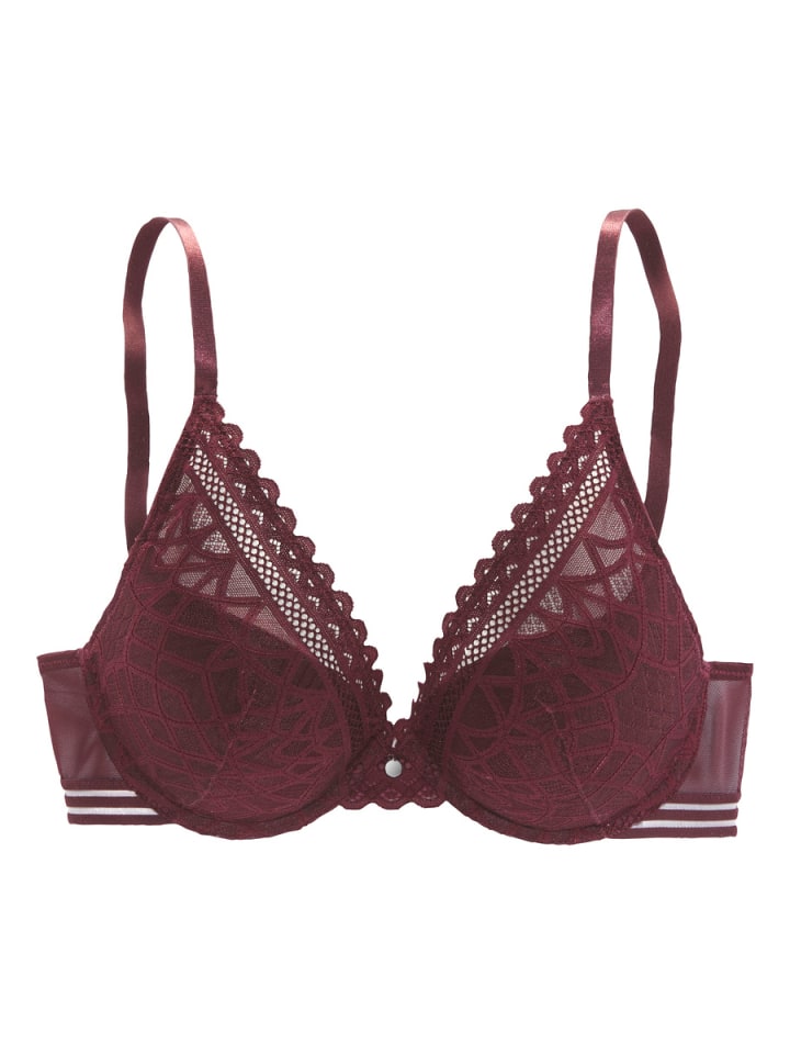 Женственный бюстгальтер пуш-ап в элегантном стиле с высокой посадкой. Чашечки покрыты жаккардовым кружевом с графическим рисунком. Украшен модной деталью спереди и тонкой полоской по бокам. Регулируемые бретели и застежка сзади. В наличии трусики из той же коллекции. Состав ткани: 60% полиамид, 35% полиэстер, 5% эластан.