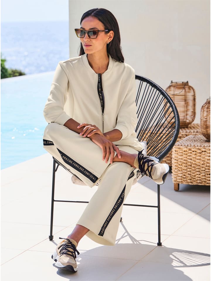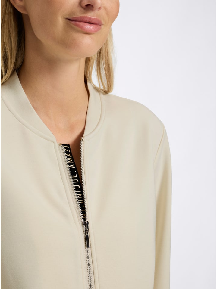 Трикотажная куртка. Модная и спортивная модель с небольшим воротником-стойкой и двусторонней молнией с надписью. Эластичные манжеты на длинных рукавах. Эластичный низ.