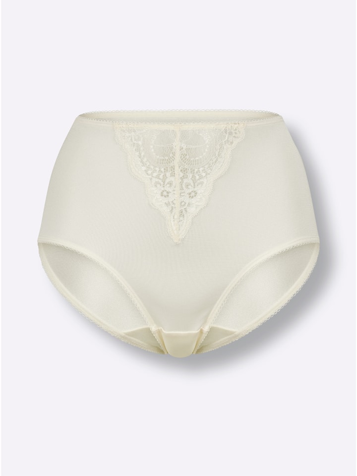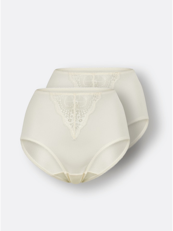 Комплект из 2 штук: Женственные трусики с высокой талией от Wäschepur из мягкой, комфортной и слегка блестящей ткани. Особенно привлекательна кружевная вставка спереди. С эластичным поясом и манжетами. Хлопковая ластовица.