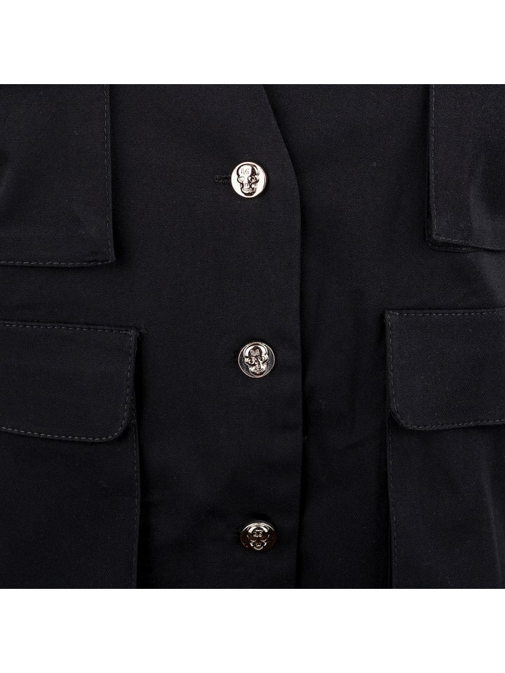 Удобный крой: свободный, слегка укороченный крой с V-образным вырезом и застежкой на кнопки.