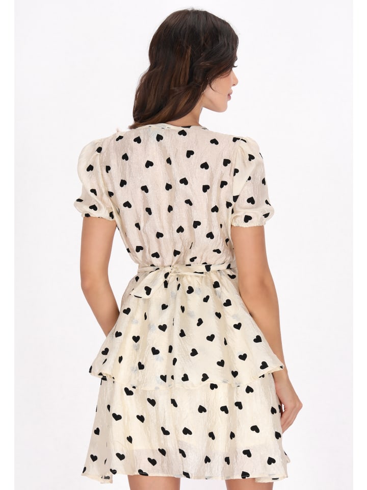 Погрузитесь в очарование этого платья-халата из нашей коллекции Fashion Look. С развевающимся V-образным вырезом и элегантными короткими пышными рукавами, оно излучает непринужденную изысканность. Зауженная талия с поясом подчеркивает силуэт, а многослойная юбка добавляет игривости и воздушности. Украшенное причудливым принтом в виде сердечек, это платье идеально подойдет для любого стильного мероприятия!