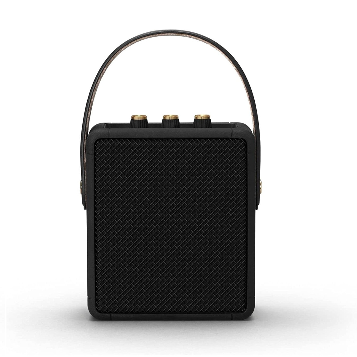Портативная колонка Marshall Stockwell II обладает стильным внешним видом, придающим ей сходство с ретро-приемником. При этом она обладает очень прочным корпусом из металла и пластика. Силиконовое покрытие корпуса защищает колонку от ударов, а также она надежно защищена от попадания влаги и пыли (IPX4). Удобные поворотные механизмы позволяют легко настраивать нужные параметры работы колонки. Подключить ее можно через Bluetooth-соединение (5.0), поддерживающее высокое качество сигнала.