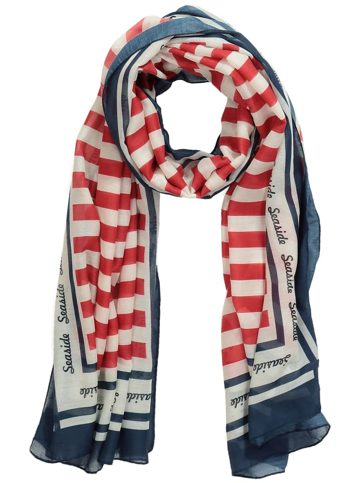 Шарф в морском стиле - с полосками и морскими деталями по краям.