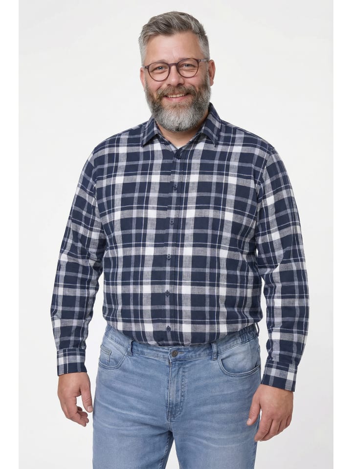 Мужская клетчатая рубашка с длинным рукавом, имитирующая лен