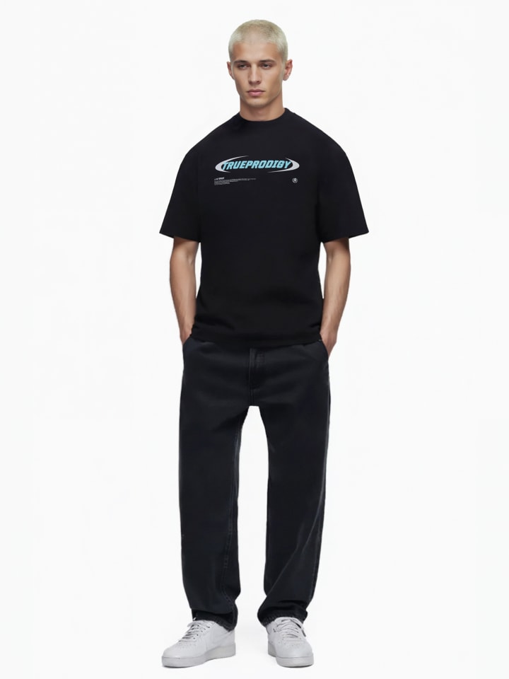 Наша футболка оверсайз от trueprodigy имеет круглый вырез с ребристыми манжетами и небольшой логотип на груди. Для дополнительного комфорта мы использовали для этой футболки специальную плотную трикотажную ткань.