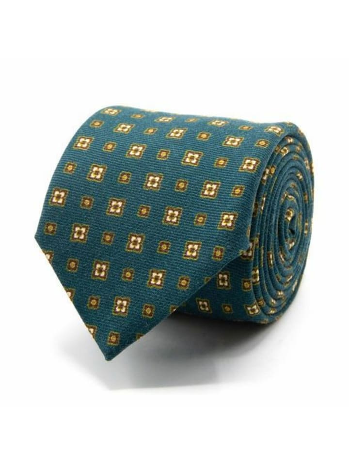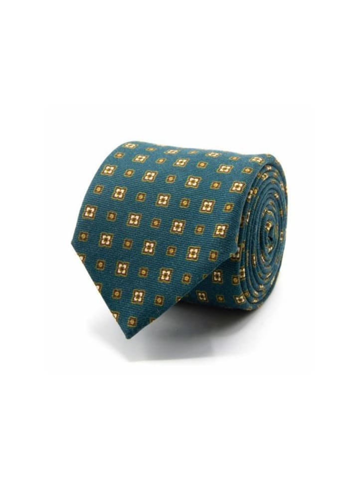 Шерстяной галстук с геометрическим узором цвета петролейного синего.