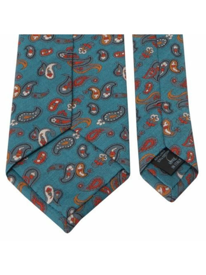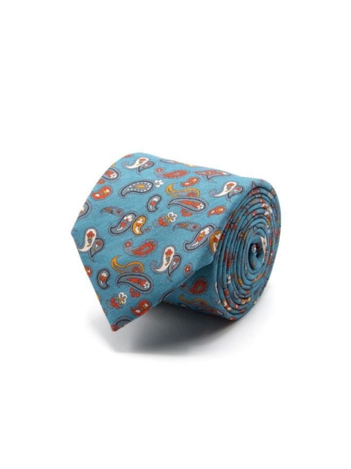 Галстук из хлопка и льна с узором «пейсли» в сине-зеленом цвете. Универсальный и подходит для разных случаев.