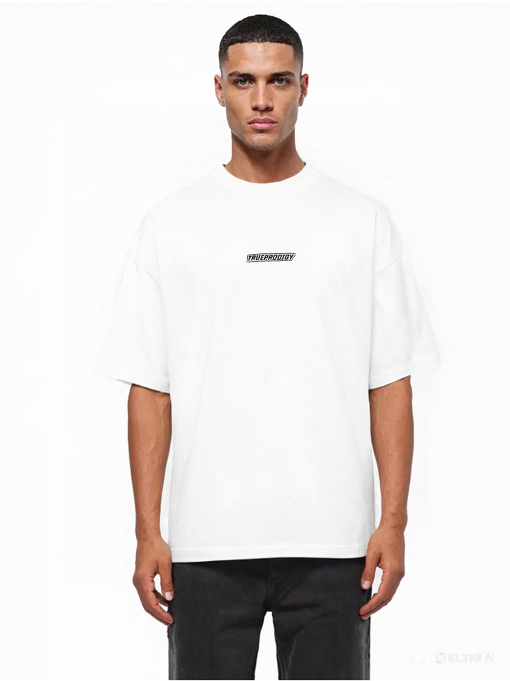 Наша футболка оверсайз от trueprodigy имеет круглый вырез с ребристыми манжетами, небольшой эластичный принт на груди и принт на спине. Для дополнительного комфорта мы использовали для этой футболки особенно плотную трикотажную ткань.