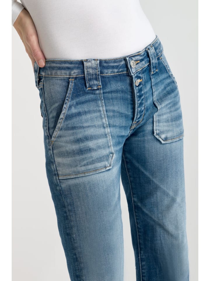 Эти модные джинсы-клеш от Le temps des cerises для женщин отличаются классическим дизайном, отличным кроем и идеальной посадкой для любого случая. Светлый оттенок придает им современный, свежий вид, а расклешенные штанины добавляют модный шарм и элегантно подчеркивают силуэт. Благодаря универсальному дизайну эти джинсы легко сочетаются с различными образами, быстро становясь настоящей изюминкой вашего повседневного гардероба. - Классические джинсы от Le temps des cerises - Изготовлены из хлопковой смеси - Стильные джинсы-клеш с расклешенными штанинами - Светлый оттенок для дополнительного шарма - Отличная базовая вещь для универсальных образов Материал: - 95% хлопок - 5% эластан