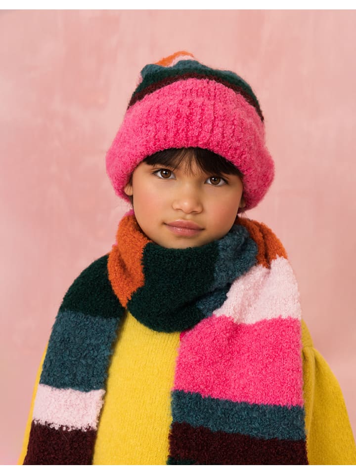 Шапка-бини из букле с яркими полосками и розовой отделкой, вышитой логотипом Oilily. Шерстяная смесь обеспечит вам уют и тепло. 2: 23,5 x 20,5 см 3: 25 x 22 см 4: 26,5 x 23,5 см - 60% акрил, 15% полиамид, 10% шерсть, 10% вискоза, 5% альпака - Сделано в Португалии