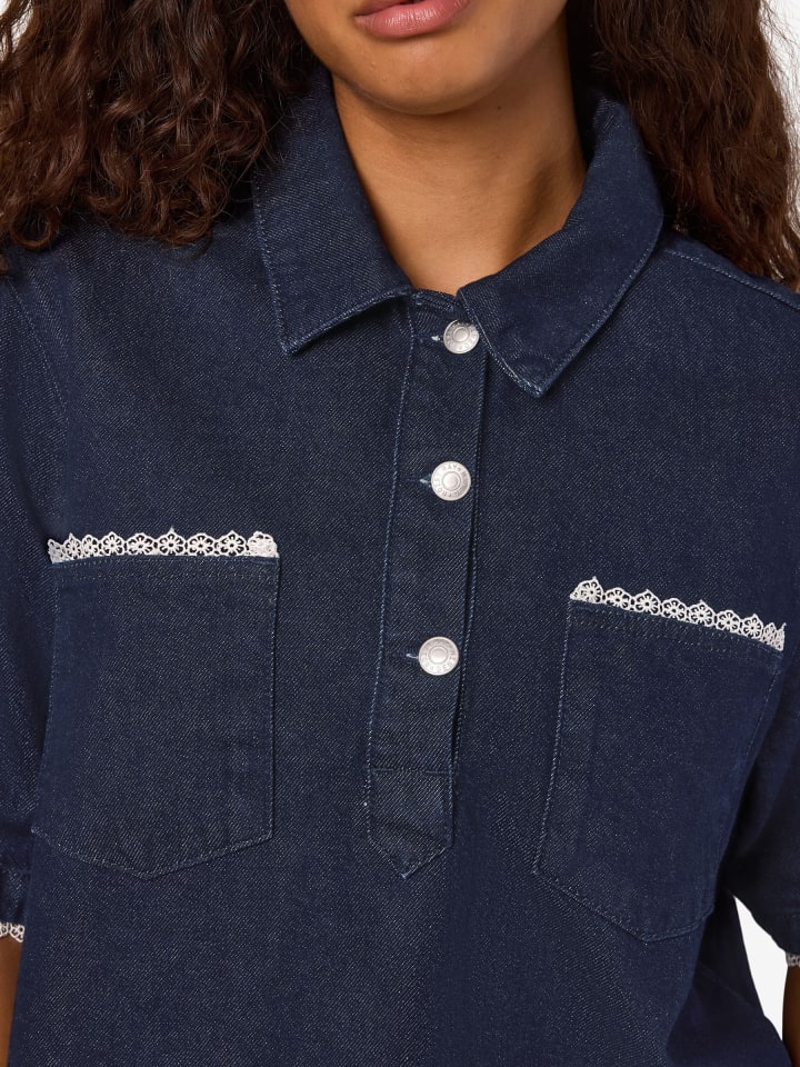 Джинсовая рубашка с кружевной отделкой