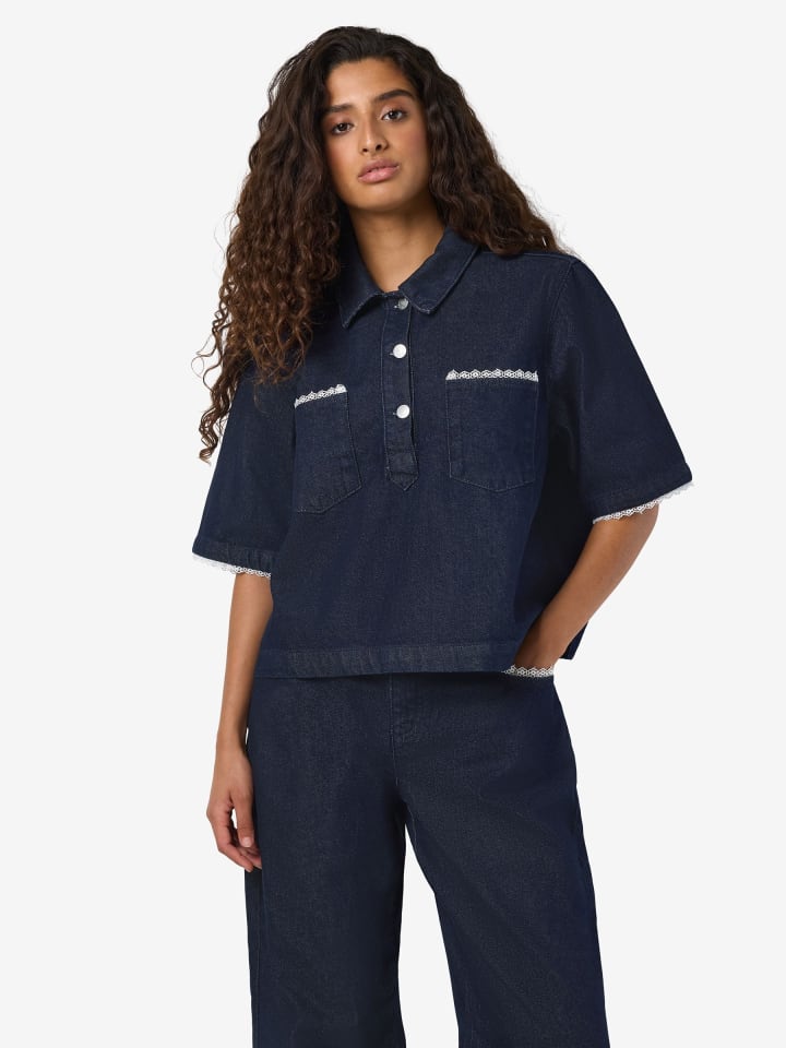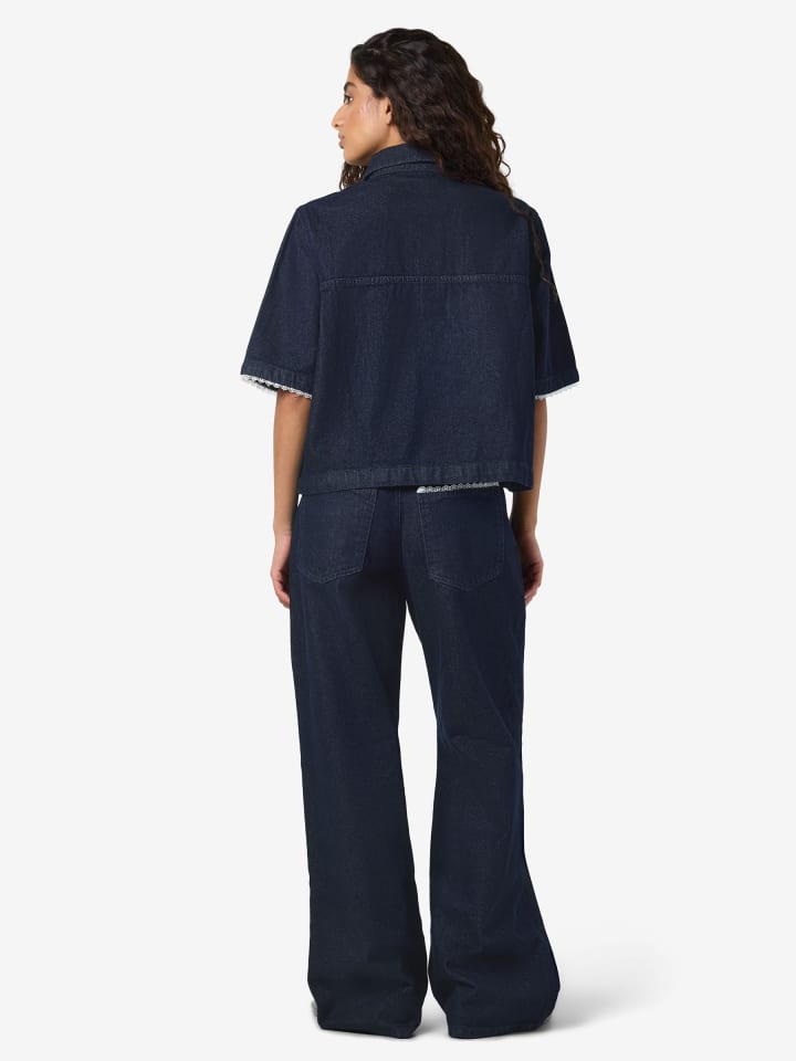 - Джинсовая рубашка с кружевной отделкой