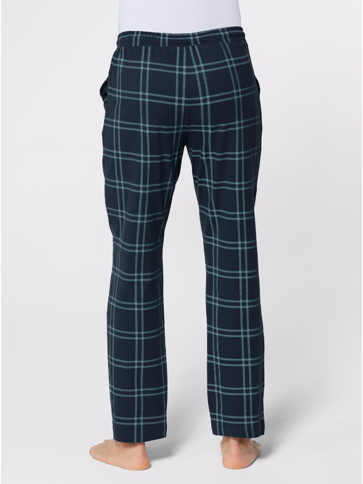 Длинные клетчатые брюки с эластичным поясом, шнурком и двумя боковыми карманами. Удобная трикотажная ткань.