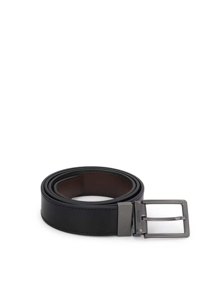 Этот вневременной и очень функциональный широкий двусторонний мужской пояс из натуральной кожи - идеальное решение для мужчин, ценящих элегантность и универсальность. Глубокий черный цвет с одной стороны, классический коричневый с другой - достаточно быстрого поворота пряжки, чтобы подобрать пояс к формальному или повседневному стилю. Прочная прямоугольная пряжка из графитовой стали подчеркивает современный, мужественный характер этого аксессуара. Этот пояс подходит как к костюму, так и к джинсам и может носиться во многих случаях. Идеальный выбор для гардероба современного мужчины. Пояс имеет 5 отверстий, расположенных на расстоянии 2 см друг от друга. Благодаря регулируемой пряжке длину можно настроить по своему вкусу.