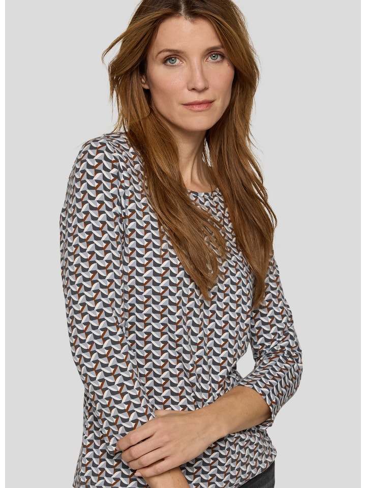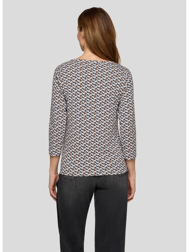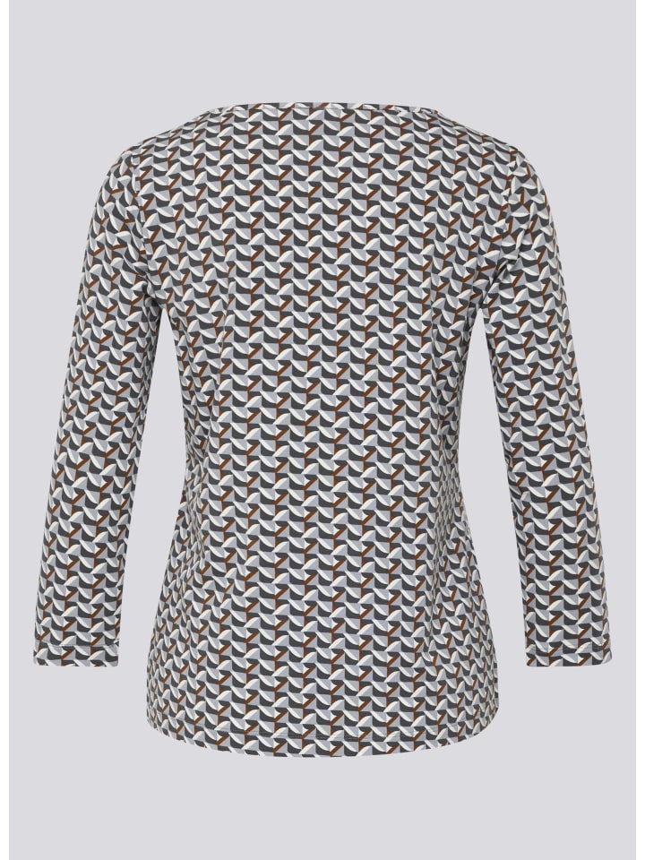 Эта рубашка украшена ярким принтом в виде кубов в приглушенных тонах - современный акцент для разнообразных образов. Классический круглый вырез и рукава три четверти создают женственный силуэт. Приятная на ощупь эластичная трикотажная ткань обеспечивает комфорт и делает рубашку идеальным вариантом как для повседневной носки, так и для офиса. Графический принт в виде кубов по всей поверхности. Удобный круглый вырез. Рукава три четверти для легкого силуэта. Эластичный, мягкий трикотаж.