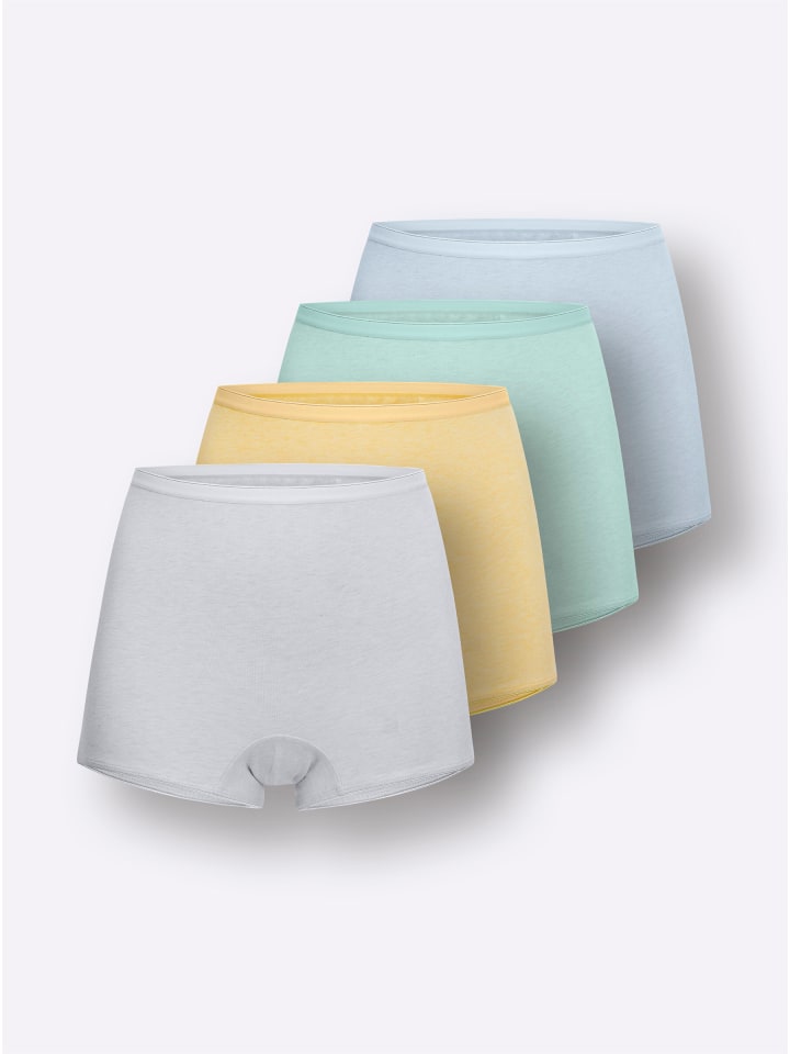 Плоский контрастный пояс и края штанин делают эти трусики в комплекте из 4 штук и меланжевом варианте неотразимыми. Хлопковая ластовица. Поддерживает инициативу «Хлопок, произведенный в Африке».