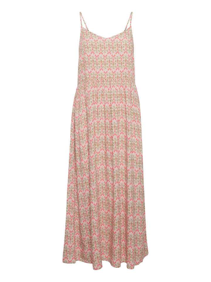 Платье-миди с принтом, мягкого, свободного кроя, узкими бретелями и V-образным вырезом. Воздушный силуэт для стильного образа.