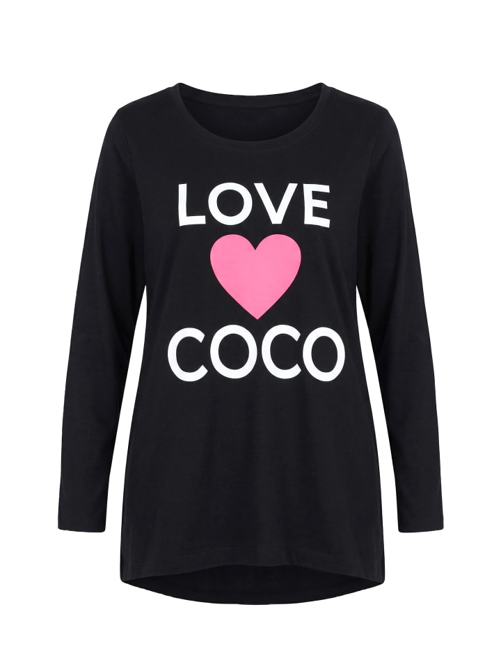 Футболка А-силуэта из мягкого трикотажа с мотивом сердечек Love Coco. Круглый вырез, длинные рукава, закругленный низ, удлиненная спинка.