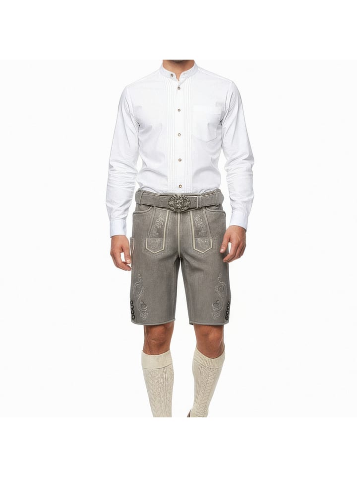 Бриджи Maik из кожи от Krüger - абсолютный must-have для Октоберфеста. Мягкая, эластичная козья кожа с тонкой вышивкой на бедрах и нагруднике делает их настоящим украшением. Еще одна изюминка - пряжка ремня с замысловатой отделкой. Ластовица сзади позволяет легко отрегулировать бриджи по размеру талии. Стильные роговые пуговицы на нагруднике и штанинах идеально дополняют эти элегантные кожаные бриджи. Также есть задний карман для кошелька. Небольшой карман на правой штанине идеально подходит для хранения мелких предметов, таких как мелочь. Эти кожаные бриджи сочетают в себе традиционное мастерство и практичные детали и действительно привлекают внимание на Октоберфесте. Особенности: - Мягкая и эластичная кожа - Бриджи с ремнем - Замысловатая вышивка - Ластовица на поясе для легкой регулировки по размеру талии - Задний карман для кошелька Материал: 100% кожа