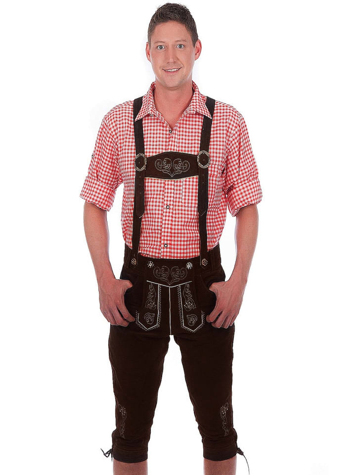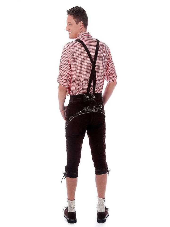 Классика среди традиционных кожаных бриджей! Будь то Октоберфест, свадьба или другое праздничное мероприятие, в этих кожаных бриджах вы всегда будете выглядеть уместно. Элегантная вышивка на этих традиционных кожаных бриджах действительно привлекает внимание! Кожаные ремни на поясе сзади и на штанинах позволяют регулировать посадку по фигуре. Бриджи имеют два передних кармана, один задний карман и боковой карман для ножа. В комплект входят подтяжки, которые можно отрегулировать по размеру. - Традиционные кожаные бриджи с подтяжками - Кожаные ремни на поясе для индивидуальной регулировки ширины - Натуральная кожа Материал: 100% кожа