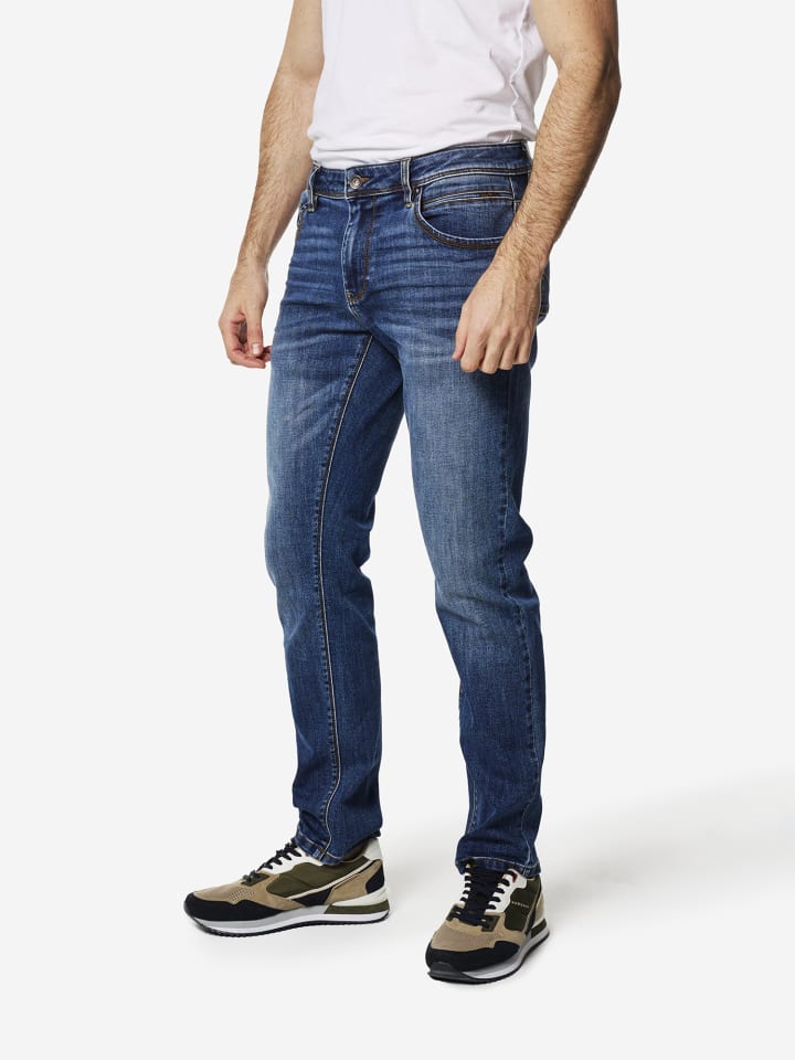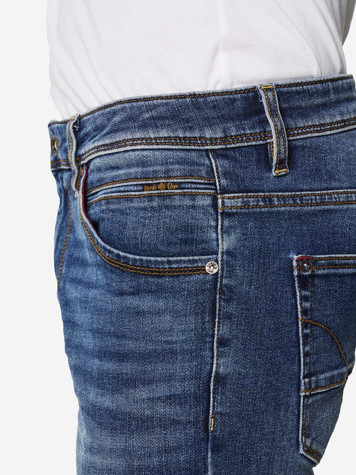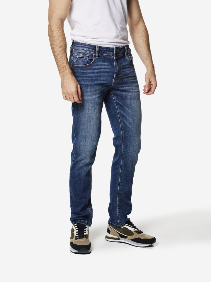 Джинсы классического кроя. Застежка спереди на молнию и пуговицу. Состав: 70% хлопок, 25% полиэстер, 3% вискоза, 2% эластан.