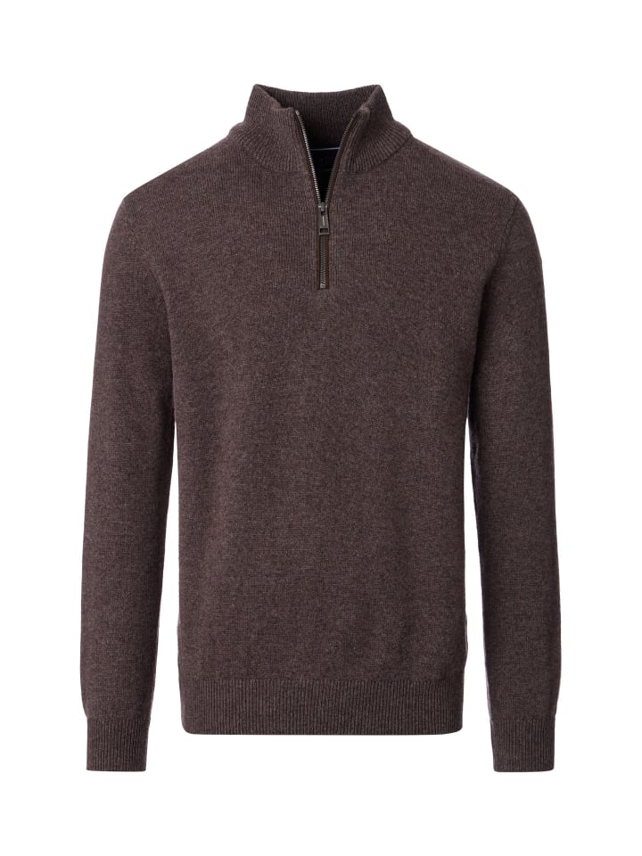 Этот вязаный пуловер впечатляет своей вневременной элегантностью и приятным теплом. Тонкая вязка создает изысканный вид, а высокий воротник с молнией добавляет современный штрих. Носите его поверх рубашки или отдельно, этот пуловер идеально подходит для создания стильных образов в прохладные дни. - Комфортная овечья шерсть - Стандартный крой - Воротник-стойка с молнией - Классический дизайн - Высокий комфорт при ношении - Материал: - 80% шерсть - 20% другие материалы