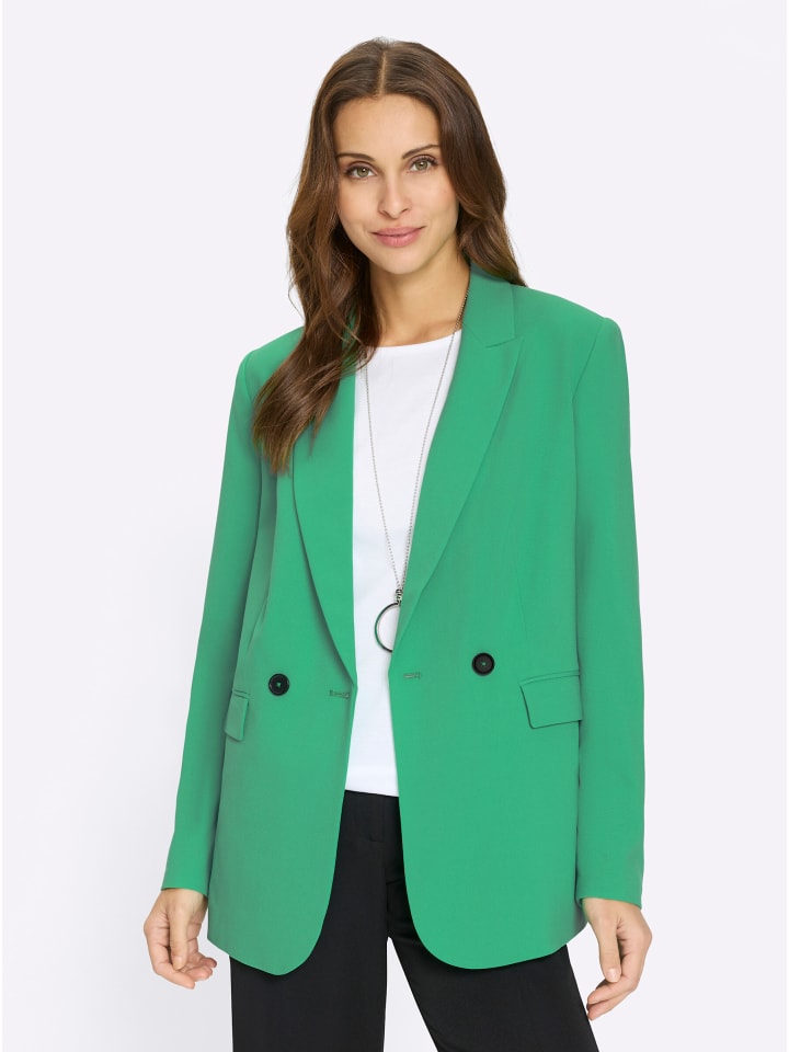 Классический блейзер привлекательного цвета, представленный здесь в двубортном варианте с длинным, удлиняющим лацканом. Вытачки и швы с обеих сторон создают лестный силуэт. Два накладных кармана. Один внутренний карман на пуговице. Изготовлен из переработанного полиэстера.