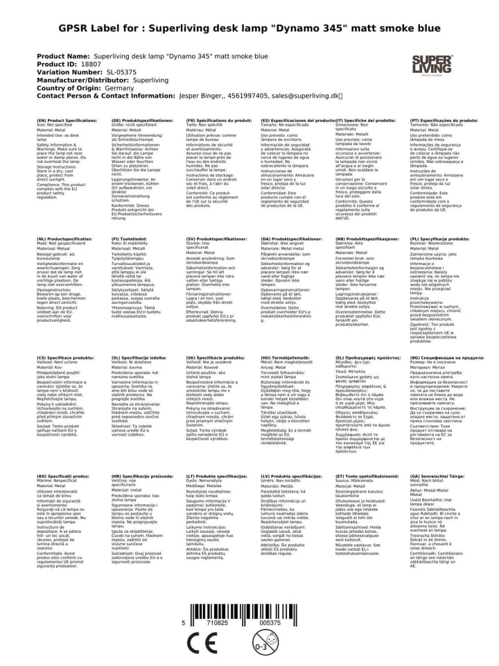 Перед вами великолепная настольная лампа от Superliving в матовом дымчато-синем исполнении. Она изготовлена из металла, окрашена в определенный цвет и поставляется с черным кабелем и тумблерным выключателем. Лампа имеет два шарнира и поворотный абажур, что позволяет идеально ее расположить. Внешний вид лампы элегантный, изысканный и классический. Эффектный дизайн характеризуется равномерно расположенными прорезями, которые придают корпусу лампы дополнительную прозрачность и легкость. Эта лампа - не только декоративный элемент, но и привлекательный предмет интерьера. Она впишется в любую комнату и прекрасно смотрится как отдельно, так и в группе. Характеристики: - Кабель 1,5 м - Встроенный тумблерный выключатель - Цоколь E14 - Макс. мощность 60 Вт - Высота 25 см - Диаметр абажура = 11 см - Диаметр основания = 14,5 см Материал: 100% другие материалы