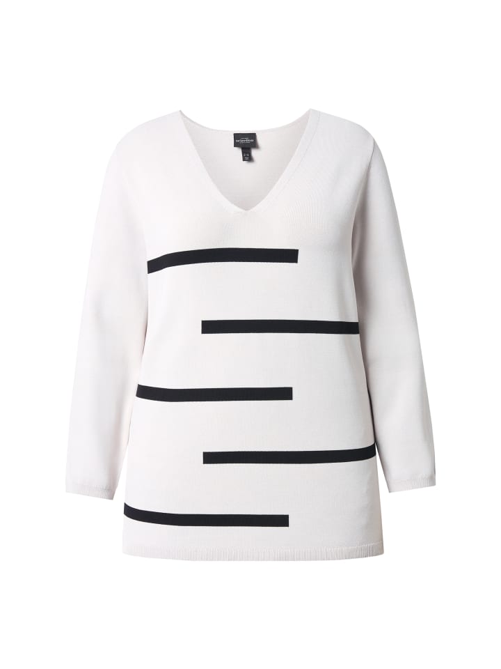 Пуловер, классический крой. Изготовлен из мягкой, тонкой летней вискозы, с гладкой драпировкой и современными цветовыми блоками в полоску спереди. V-образный вырез, длинные рукава, ребристые манжеты - идеально подходит для повседневных покупок. Высококачественная, полностью формованная конструкция.