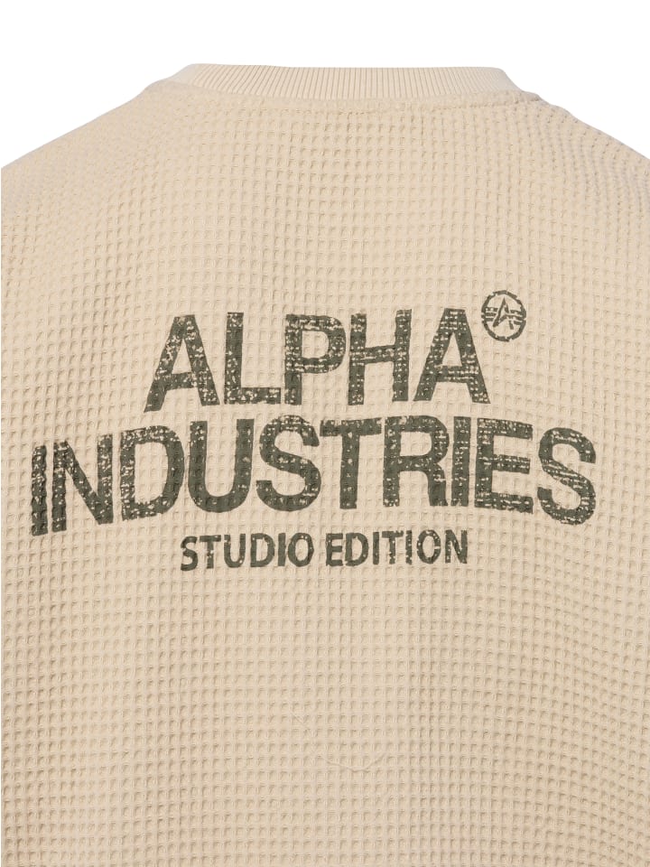 Толстовка Studio Waffle от Alpha Industries, изготовленная из хлопкового вафельного пике, впечатляет своей текстурой и комфортом.