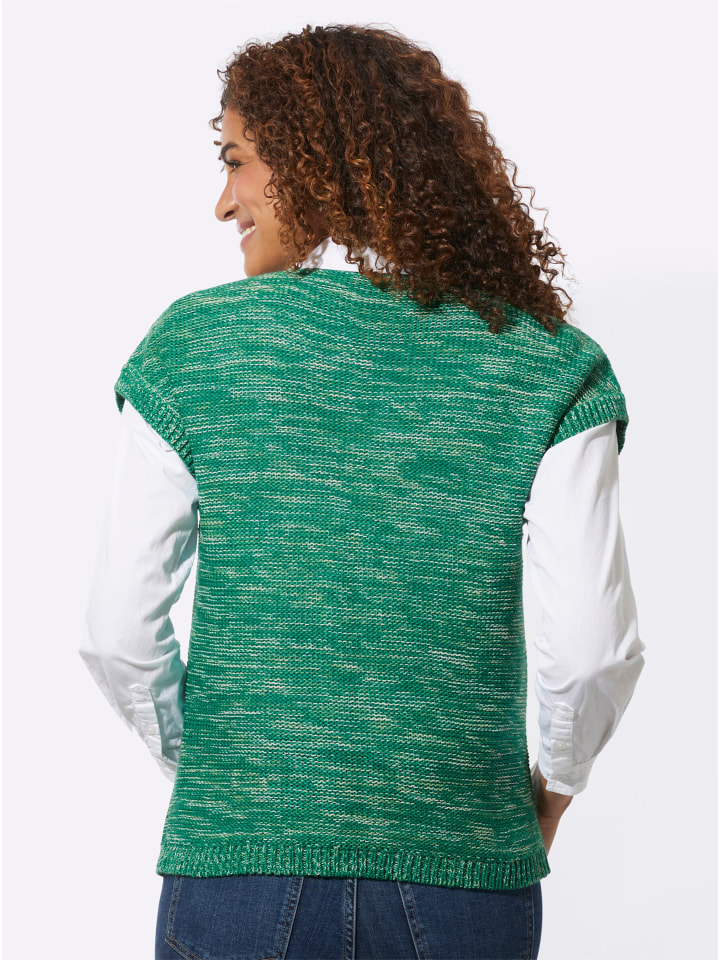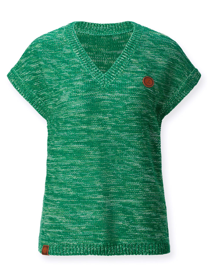 Вязаный наизнанку, высококачественный меланжевый узор: жилет с V-образным вырезом, приспущенными плечами, ребристыми манжетами и нижним краем. Поддерживает инициативу «Хлопок, произведенный в Африке».