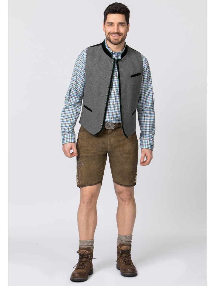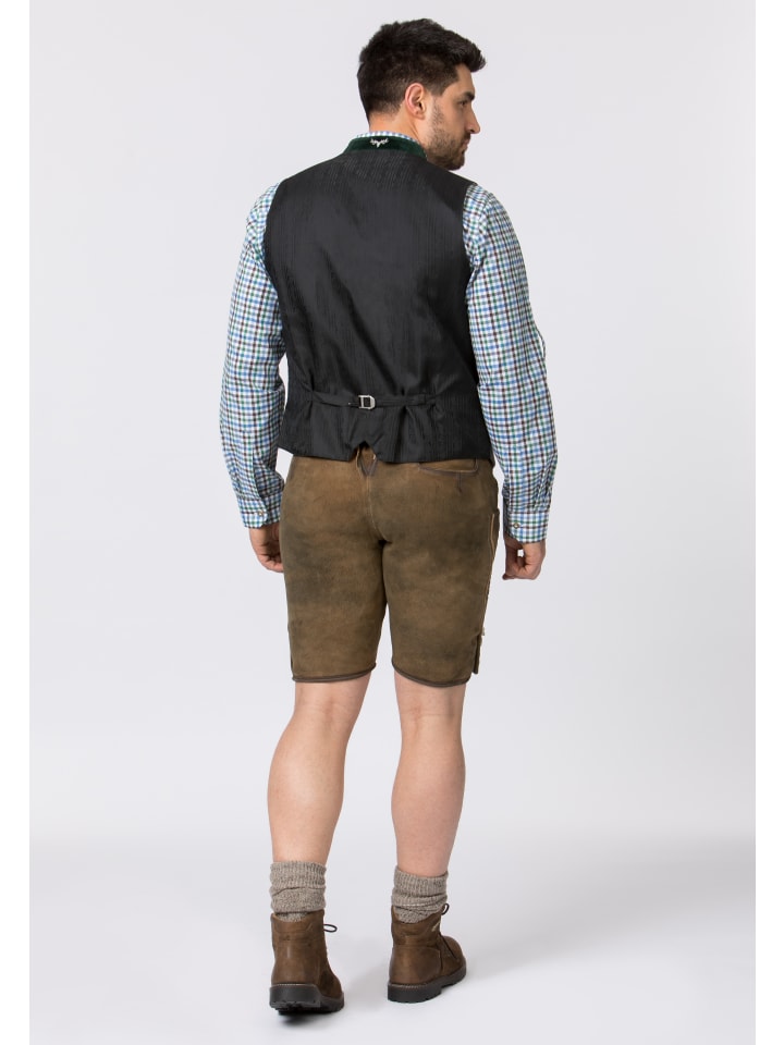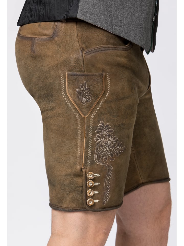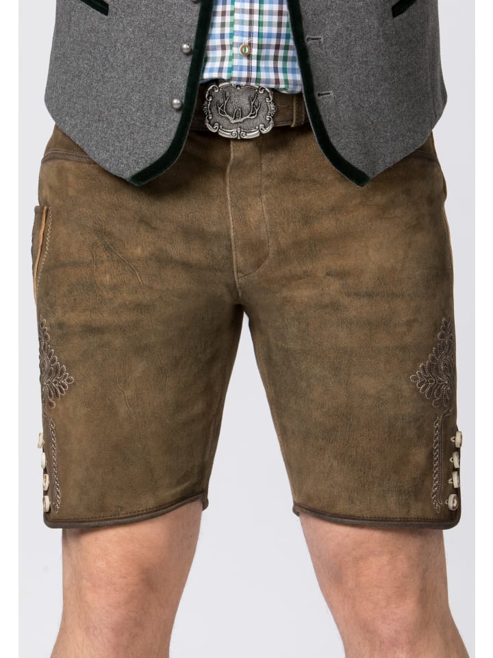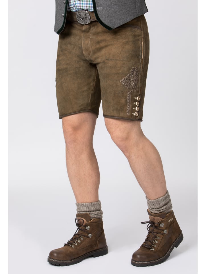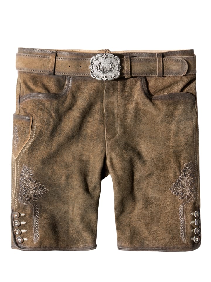 Традиционные кожаные бриджи Corbi от Stockerpoint Classics. Эти короткие кожаные бриджи, изготовленные из высококачественной дубленой замши с отделкой под оленью, отличаются исключительной текстурой и идеально сочетаются с классическими пуговицами из рога. Вместо нагрудника эти бриджи имеют застежку-молнию. Традиционная вышивка ненавязчиво подчеркнута, что придает стилю неповторимый характер. Бриджи поставляются с поясом и пряжкой с изображением оленя из античного серебра. Это универсальный предмет одежды, который идеально сочетается со многими традиционными нарядами. - В комплекте пояс - Высококачественная дубленая козья кожа - Шнуровка сзади на поясе - Ручная работа и превосходное мастерство - 100% натуральная кожа Материал: 100% кожа